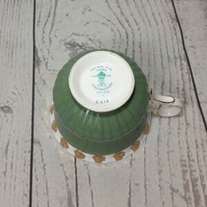 Crown Staffordshire Tea Cup And Saucer Green With Gold Roses E614 England