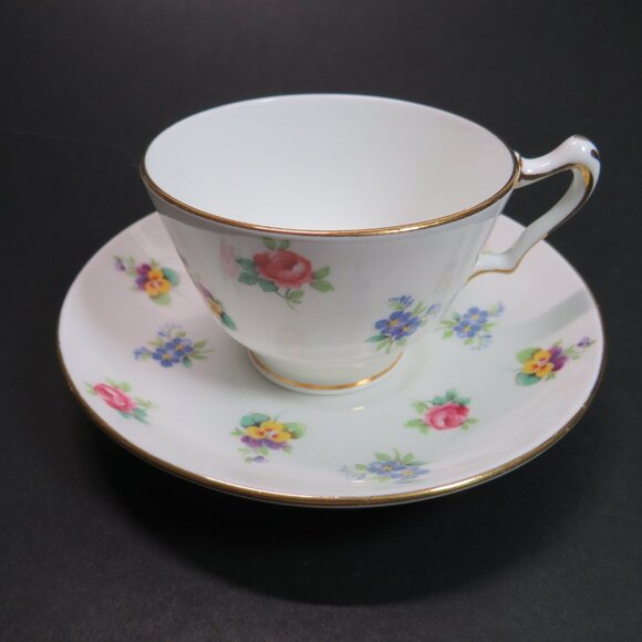 Crown Staffordshire fine bone china "Rose Pansy" pattern Gold Rim