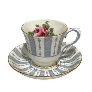 Crown Staffordshire bone china porcelain demitasse teacup & saucer set floral
