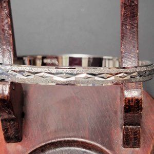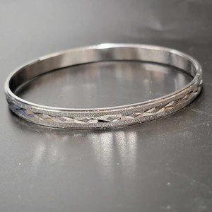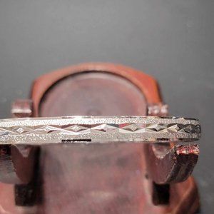 1950s Crown Trifari beautiful design silvertone bangle bracelet. Looks like it has never been worn. 2 5/8" diameter; 1/4 " across. Please see pictures and ask any questions. It truly is a beautiful bracelet.