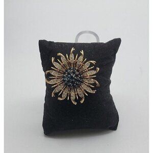 This brooch is absolutely Gourgeos. The pictures don't do this Brooch justice. The shine & sparkle is amazing. Heavy Brooch. No lose or missing stone. There is no discoloration to the metal or the stones.