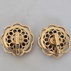 Vintage Crown Trifari Earrings Modern Mosaics Sapphire Blue and Turquoise stones scalloped Gold Tone Clip On 60s Alfred Philippe design