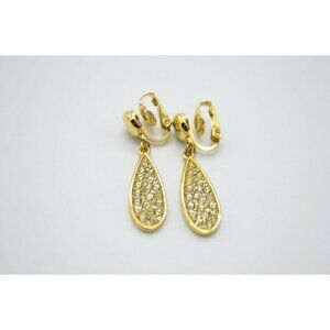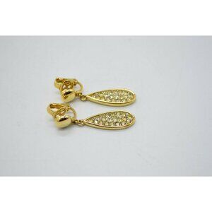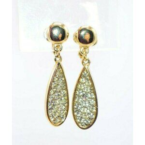 Crown Trifari Clear Pave Rhinestone Gold Tone Dangle Clip Earrings MCM