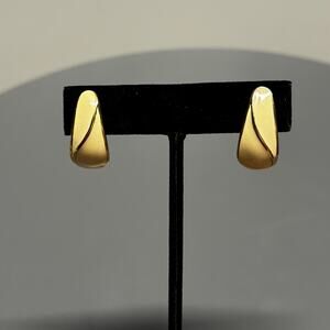 Crown Trifari Clip On Earrings Cream Enamel Gold Tone Abstract Swirl VTG Signed