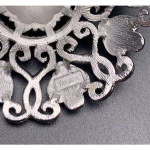 Crown Trifari Domed Brooch Pin Vintage Silver Tone Open Work Round Swirl Signed