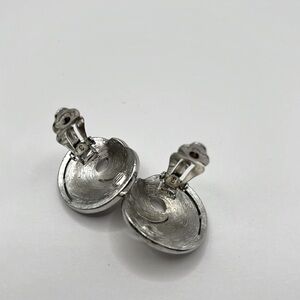 Crown Trifari Estate Silver Matte Silver Plated Clip On Earrings signed