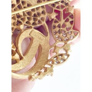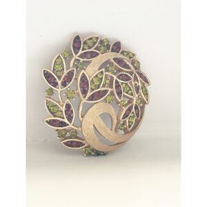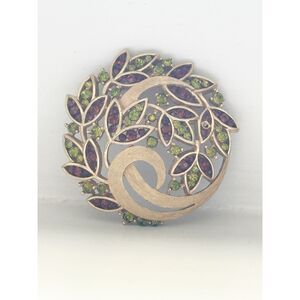 Crown Trifari Gold Tone Floral Brooch – Lime & Topaz Rhinestones 1 7/8"