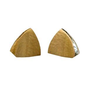 These Crown Trifari Hammered Gold Modernest 60's Clip Earrings are a rare find. Designed by Trifari, they feature a unique triangular hammered metal pattern in gold. Perfect for women who appreciate vintage style.