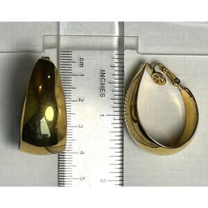 Elegant Crown Trifari hoop earrings measure 1 1/2 inch tall and 1 inch wide. Clip on, signed on hinge mechanism.