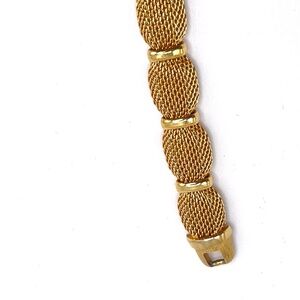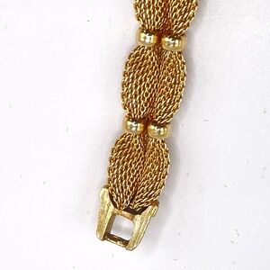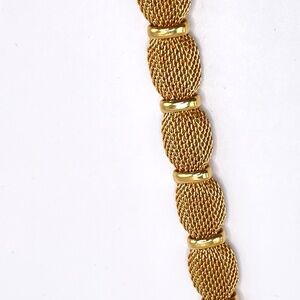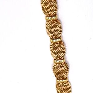 Crown Trifari Signed Vintage Gold Tone Mesh Polished Gold Tone Bracelet 7"