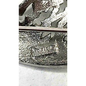 Description: This gorgeous vintage Crown Trifari brooch pin in a brushed and polished gloss silver tone. It is signed Crown Trifari.