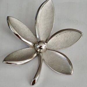 Crown Trifari Silver Tone Brooch Flower Plumeria Mid-Century Modern Vintage MCMMint condition, like new, no scratches