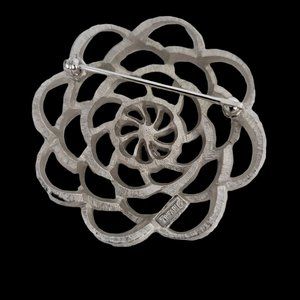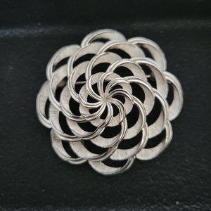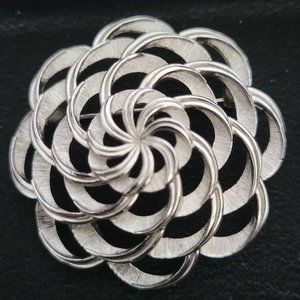 Crown Trifari Silver Tone Round Circular Circle Brooch 1 1/2" Vintage 1950s