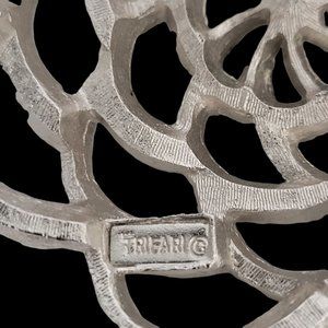 Crown Trifari Silver Tone Round Circular Circle Brooch