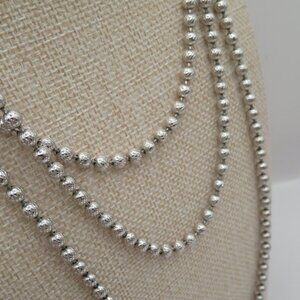 Crown Trifari Silver Tone Textured Beaded Necklace. Approximately 60 inches in length.