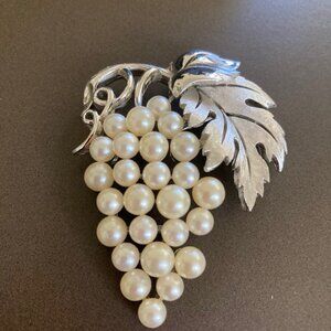 Crown Trifari Vintage Faux Pearls Grape Cluster Brooch Pin Silver Tone Signed