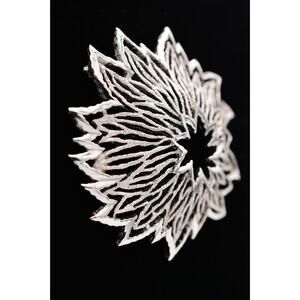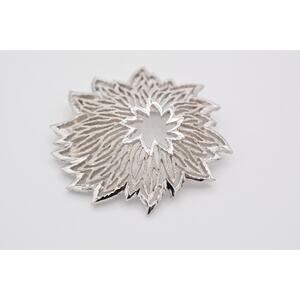Crown Trifari Vintage Flower Pin Brooch Textured Silver Tone Large Signed Bin4