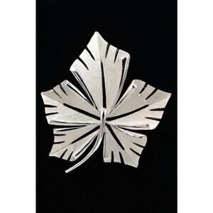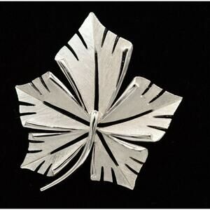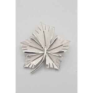 Crown Trifari Vintage Pin Brooch Statement Brushed Silver Maple Leaf Signed 9B