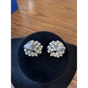 Crown Trifari faux pearl spray brooch and matching earrings vintage