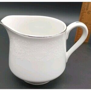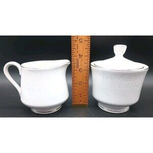 Crown Victoria LOVELACE Creamer & Sugar Bowl w/ Lid White Floral Platinum Trim