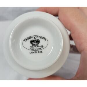 Approximate measurements: 3.25" diameter 4" high 4.5oz Crown Victoria, Lovelace. Made in Japan. -Ships within 1-3 business days -Smoke free/cat friendly home -Lint rolled/cleaned before shipping -Ask questions, happy to answer -Willing to look at discounts for bundles, just ask
