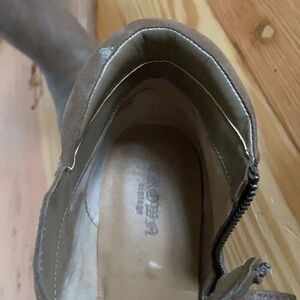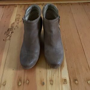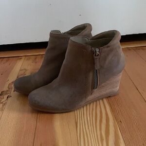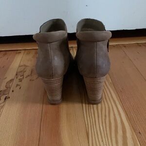 Crown Vintage “Christa” stacked heel wedge booties in genuine leather size 7.5. Light wear to leather, overall very good preowned condition.