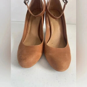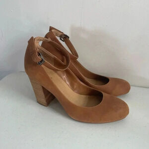 Step up your shoe game with these Crown Vintage Audrey Ankle Strap Block Heels. These chic size 9.5 shoes feature a stylish brown leather design and a comfortable stacked block heel. In Excellent Used Condition (EUC), they are perfect for both casual and formal occasions.