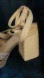 Elegant beige wedges with braided straps. Perfect for casual outings. Comfortable and stylish design.