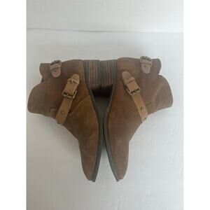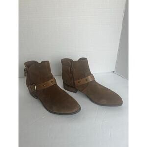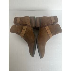 Crown Vintage Brown Leather Pointed Toe Studded Straps Block Heel Ankle Boot 8.5