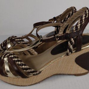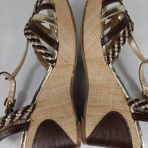 Crown Vintage Brown/Gold Whisper Wedge Espadrilles Sandals Size: 8M