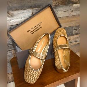 Step into elegance with these Crown Vintage gold flats, showcasing a distinctive woven texture and a stylish buckle strap. Perfect for any occasion, these flats combine comfort and sophistication effortlessly. Great for any formal or casual event. Prom, homecoming, bridesmaids, Bridal shower, bachelorette party, cruise, date night, dancing, clubbing, girls night out, cocktail events, and more! NWT Box!! NEVER WORN!! Accepting "reasonable" offers!!