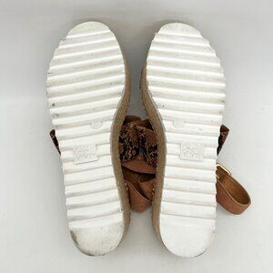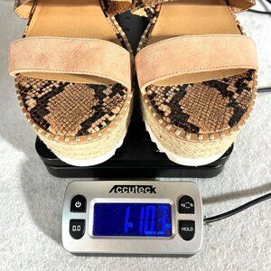 Crown Vintage Espadrille Platform Sandals Womens 9M Snake Print Tan Ankle Strap