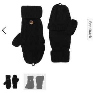 By DSW's Crown Vintage label, here is a pair of Cable Knit Convertible Gloves in black. As shown in photos, they are brand-new/unused, with tag and little hanger still attached. These are sold out on DSW's website, but you can still see them, and the product description & features are as follows (also included in photos):