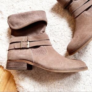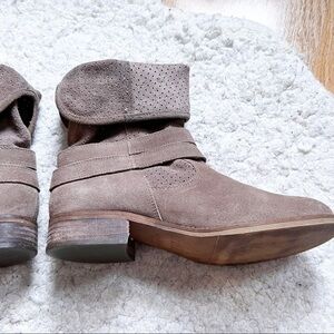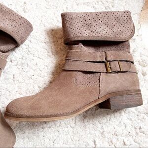 Crown Vintage Khaki/Tan Perforated Suede Fold Over Booties Size 10M