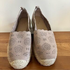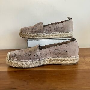 Crown Vintage Laser Cut Suede Shoes Womens Size 8.5 Slip On Espadrille Loafer