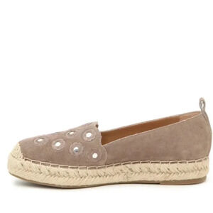 Style tags: Crown Vintage, Espadrilles, leather, taupe, jute, mirrored embellishment, netural, casual, wardrobe staple