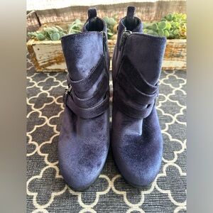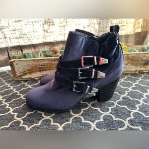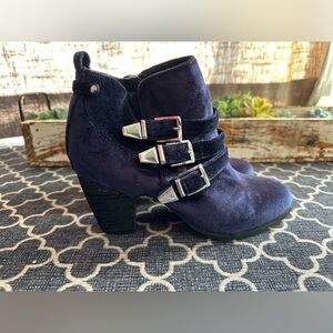 Crown Vintage Navy Side- Buckle Vegan Leather Ankle Boots with Buckles- size 7