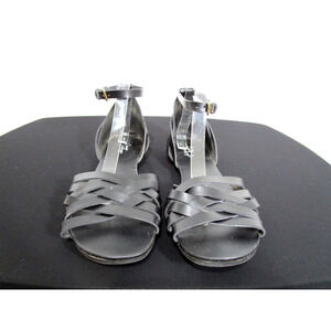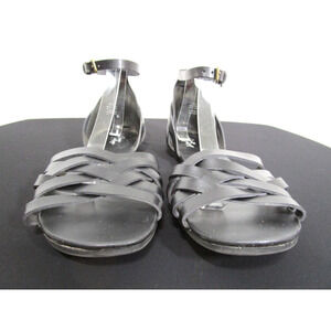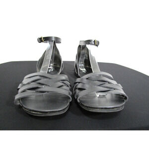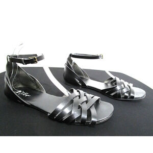 Crown Vintage Nayli Black Faux Leather Ankle Strap Flat Sandals Women 9.5