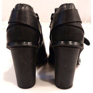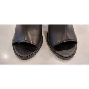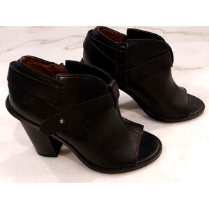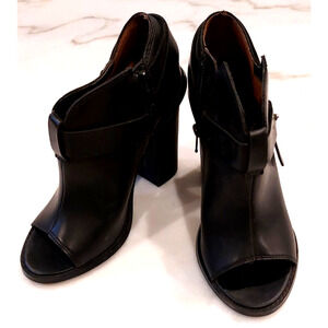 Crown Vintage Peep Toe Black Leather Block Heels Size 6.5