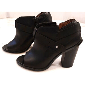 The Crown Vintage peep toe black leather block heels in size 6.5 are a stylish and comfortable choice for women. With a high block heel and zip closure, these vintage-inspired booties are perfect for casual outfits. Made from luxurious leather, these shoes showcase a unique peep toe design that adds a touch of sophistication to any wardrobe. Perfect for adding a classic touch to your look while still providing excellent comfort and support.