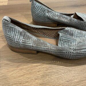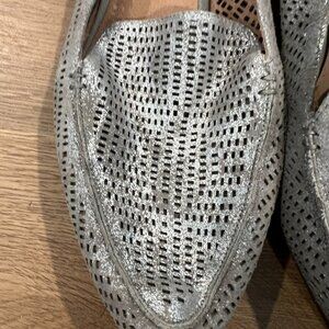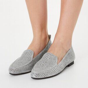 Crown Vintage Silver Gray Flats Loafers Veneta Leather Laser Cut Size 10