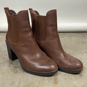Crown Vintage Size 9.5 Chocolate Brown Genuine Leather Chunky Heel Ankle Booties.