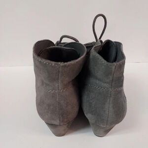 Booties have been worn previous. There are a few marks throughout on the Suede and some wear on the bottom heel part. Please look at pictures and ask any questions.