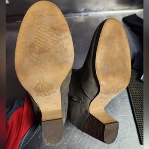 Elevate your style with these chic dark green suede ankle boots. Perfect for any occasion, these boots offer both comfort and elegance. Great used condition.