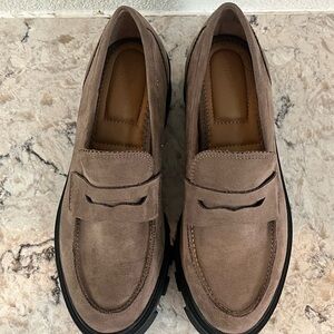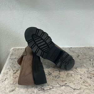 Experience timeless elegance with Crown Vintage's tan flats, featuring a chic moccasin-inspired design and a contrasting black sole for added height and durability. These slip-on loafers offer a perfect blend of style and comfort, making them an ideal choice for any casual outing.