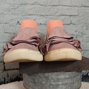 Crown Vintage Womens 7.5 Blush Ruffle Faux Suede Slip On Merie Flat Sneakers