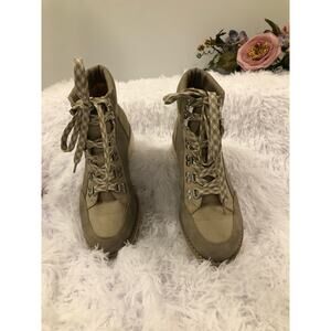 Crown Vintage Women’s Lace-up Boots 6M Faux Suede Upper Metal D Ring Lug Sole
