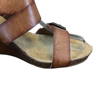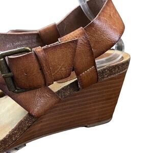 Crown Vintage Womens Stacked Wedge Strappy Sandals Brown Open Toe sz 9.5