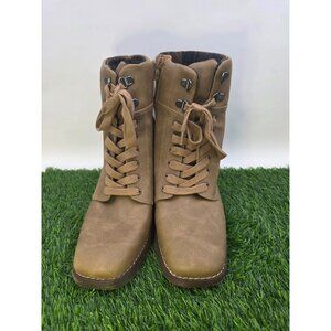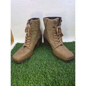 Crown Vintage Womens Tan Lace-Up Ankle Booties W Block Heel Size 11M Synthetic