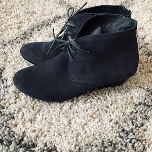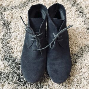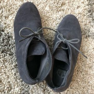 Women’s size 7.5 Crown Vintage solid gray authentic suede leather wedge lace up ankle booties. Gently worn and in excellent condition with no flaws. Non smoking household.